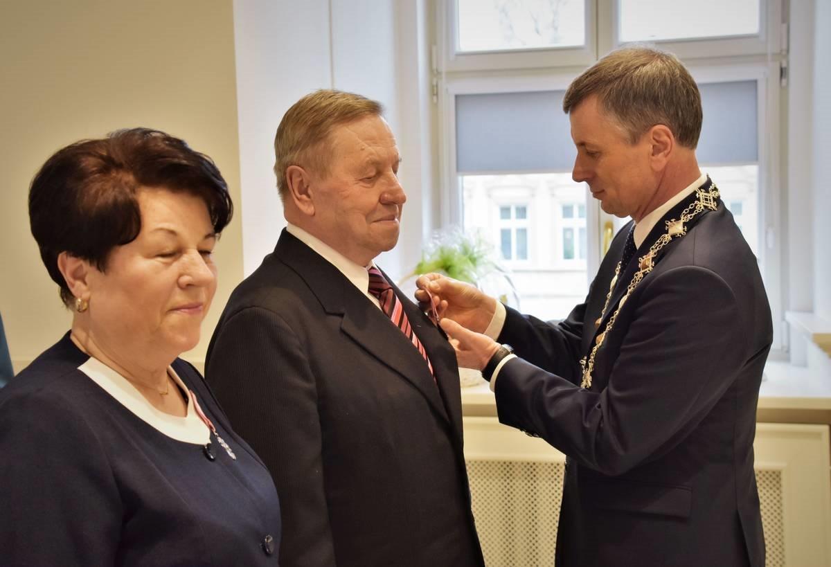 Kolejni mieszkańcy z naszej Gminy mogą poszczycić się przepięknym Jubileuszem i stażem małżeńskim. 53 lata temu związek małżeński zawarli Teresa i Kazimierz Szwanka, a 50  lat temu państwo  Danuta i Eugeniusz Hańczuk.  Z tej okazji dostojni Jubilaci przyjęli zaproszenie od burmistrza M. Szkudlarka i 1 lutego pojawili się na spotkaniu w swarzędzkim ratuszu. Podczas uroczystości otrzymali z rąk gospodarza gminy pamiątkowe „Medale za Długoletnie Pożycie Małżeńskie”, przyznane im przez Prezydenta RP. Zarówno burmistrz Marian Szkudlarek jak i kierownik USC Anna Wiśniowiecka-Gronowska życzyli małżonkom kolejnych, wspólnych lat w zdrowiu i szczęściu oraz przekazali kosz słodkości i kwiatów. Gratulujemy!
