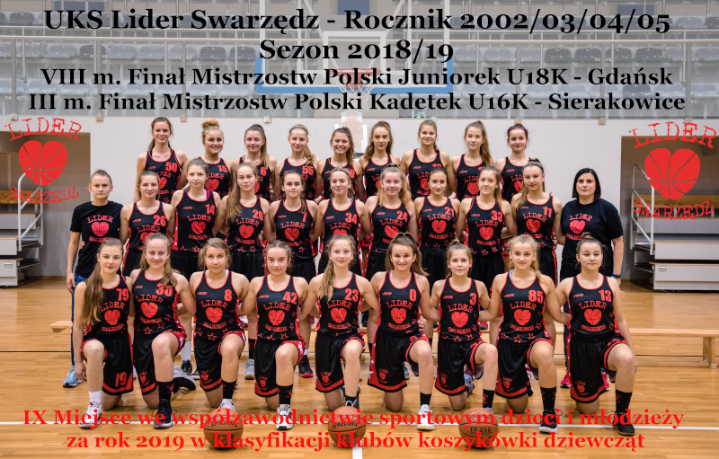 Przed nami same tuzy szkolenia młodzieżowego w Polsce, kluby które ściągają najbardziej utalentowaną młodzież z całej Polski. Jesteśmy pierwszym klubem w rankingu, który grał tylko wychowankami i to jest największym powodem do dumy. Na podium znalazły się AZS Gorzów 221,93 pkt, MUKS Poznań 195,26 i AZS Poznań 187,01. Lider zdobył 71,42 punktu, na który złożyły się: VIII miejsce w MP Juniorek U18K, III miejsce i historyczny brązowy medal w MP Kadetek U16K, VI miejsce w Wielkopolsce w lidze Młodziczek Starszych U14K oraz IV miejsce Oli Szuby z Kadrą WZKosz na Ogólnopolskiej Olimpiadzie Młodzieży w Bochni. Gdyby nie zasady, że zawodniczka punktuje tylko w jednej kategorii, to bylibyśmy jeszcze wyżej, gdyż w finale juniorek, aż 9 naszych zawodniczek było młodszych od rywalek. Dzięki fantastycznej pracy sztabu trenerskiego: Anny Talarczyk, Magdaleny Dedio i Andrzeja Śniadka, Swarzędz jest silnym ośrodkiem szkolenia koszykarskiego na mapie nie tylko Wielkopolski, ale i Polski. W sezonie 2019/20 Lider był trzecią siłą Wielkopolski, ustępując tylko wymienionym klubom z Poznania. Praca włożona w szkolenie zaowocowała przyznaniem Liderowi programów szkoleniowych KOSSM i SMOK przez Polski Związek Koszykówki. W sezonie 2019/20 w sekcji koszykówki Lidera trenuje prawie 200 dziewczynek i chłopców, co jest największym powodem do dumy.