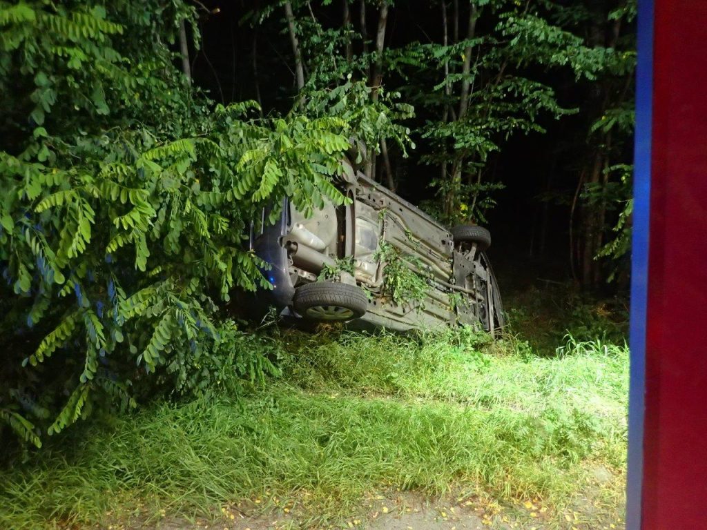 – Po przybyciu na miejsce  strażacy – około 100 metrów dalej, w pobliskich zaroślach  – zauważyli światła samochodu. Okazało się, że na rozlanym oleju samochód osobowy wpadł w poślizg,  dachował i wpadł do lasu – relacjonuje Tomasz Tomaszewski, naczelnik OSP Kobylnica. Strażacy wezwali na miejsce policję oraz zespół ratownictwa medycznego,  po czym przystąpili do działań ratowniczych.  – Na szczęcie kierowca samochodu nie odniósł poważniejszych obrażeń i nie wymagał przewiezienia do szpitala – dodaje szef kobylnickich strażaków.