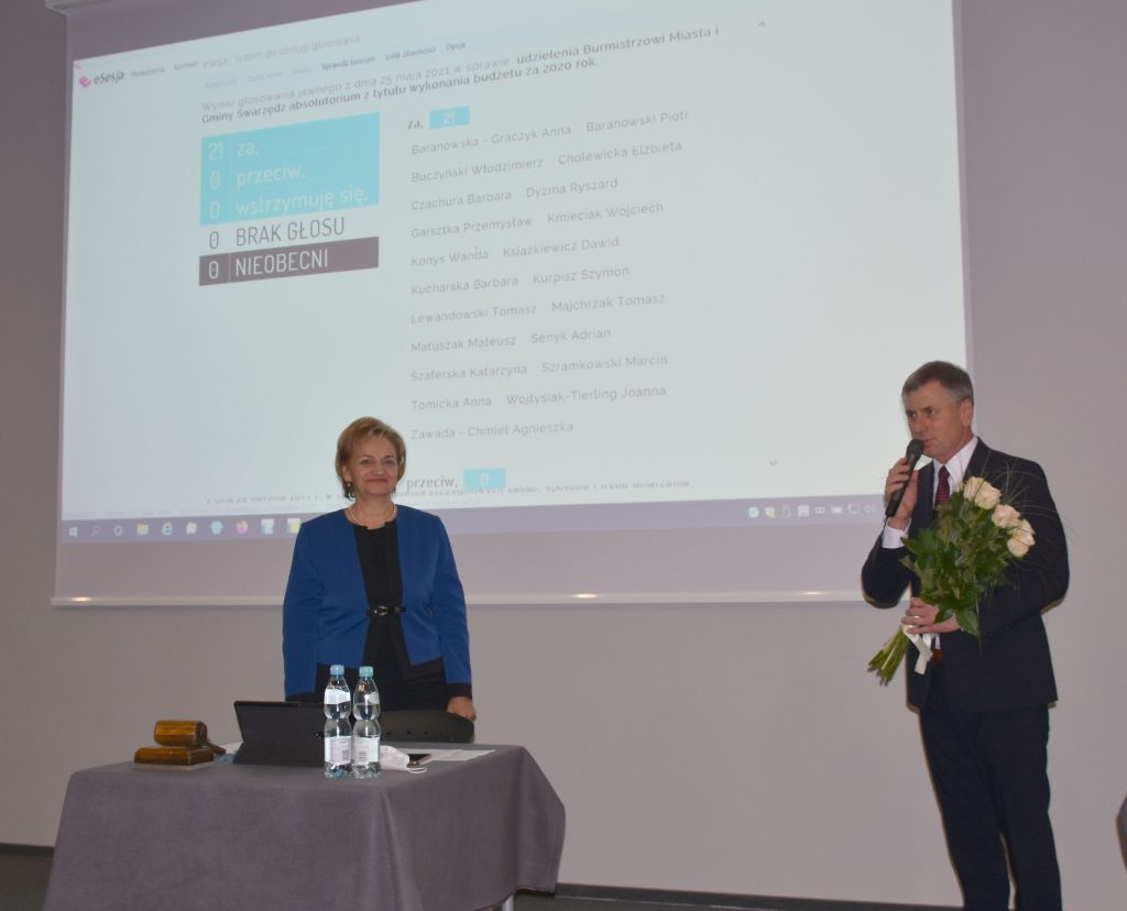 Sesja absolutoryjna odbyła się w miniony wtorek w SP nr 2 w Zalasewie. Głosowanie nad absolutorium dla burmistrza poprzedziły – jak zwykle – określone i dość żmudne procedury: odczytanie sprawozdania z wykonania budżetu za 2020 r., przedstawienie opinii Regionalnej Izby Obrachunkowej na ten temat, a także opinii poszczególnych komisji Rady Miejskiej oraz samorządowej Komisji Rewizyjnej. Zgodnie z najnowszymi wymogami ustawy o samorządzie terytorialnym burmistrz przedstawił też raport o stanie miasta i gminy za ubiegły rok. W krótkim wystąpieniu gospodarz Swarzędza zaprezentował najważniejsze ubiegłoroczne inwestycje, na które wydano blisko 50 mln zł (wśród których znalazła się m.in. rozbudowa SP2 w Swarzędzu, kolejny etap budowy ul. Transportowej w Garbach-Zalasewie, budowa ronda przy ul. Kórnickiej, czy rozbudowa bazy transportowej w Garbach), mówiąc też m.in. o kondycji miejskich finansów w dobie pandemii, realizowanych zadaniach związanych z kanalizacją, planowaniem przestrzennym, infrastrukturą komunalną i drogową, ochroną środowiska, a także o oświacie, która rokrocznie stanowi najważniejszy punkt w swarzędzkim budżecie. – Miniony rok był wyjątkowo trudny z powodu pandemii. Odcisnął piętno nie tylko na naszym zdrowiu, na relacjach społecznych, ale również na gminnych finansach. Musimy pamiętać, że samorząd to nie urząd gminy. Samorząd to mieszkańcy, którzy od urzędu oczekują zapewnienia najwyższego poziomu usług publicznych. Każdego dnia, razem z moim zespołem pracowników urzędu i jednostek organizacyjnych Gminy, realizujemy ten cel. Efektem naszej pracy są wykonane inwestycje, pozyskane dofinansowania ze źródeł zewnętrznych, liczba wydanych decyzji oraz – co jest dla nas priorytetem – liczba spraw pozytywnie załatwionych – mówił w trakcie spotkania burmistrz, podkreślając że poziom wykonanych inwestycji, biorąc pod uwagę utrudnione procedury związane z pandemią, był bardzo wysoki, także na tle innych gmin powiatu poznańskiego. – Świadczy to o tym, że daliśmy sobie radę – podkreślił.