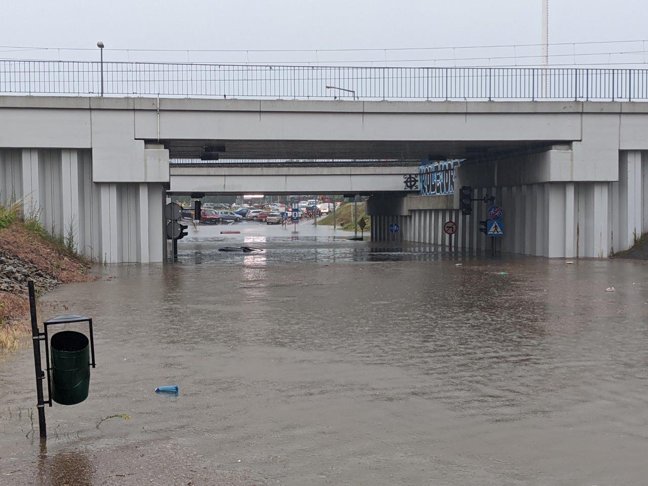 We wtorek nad naszą gminą przeszła nawałnica, która na kilka godzin sparaliżowała miasto. Około 13:00 nad Swarzędzem pojawiły się granatowe chmury, a potem długo wyczekiwany deszcz. Niestety, opady przekształciły się dość szybko w 3-godzinną nawałnicę, która sparaliżowała nie tylko Swarzędz, ale i okoliczne sołectwa. Opady były tak duże, że uliczne studzienki nie nadążały z odbiorem wody. Po kilkunastu minutach intensywnych opadów pojawiły się podtopienia ulic, zalane zostały tunele w ulicy Piaski i pod wiaduktem w Kirkora a na ulicach Swarzędza potworzyły się olbrzymie korki. Sytuacja zaczęła robić się dramatyczna, tym bardziej, że strażacy nie nadążali z pompowaniem wody, a akcję utrudniała burza i dalsze opady. Ich nasilenie było tak duże, że skarpy w ulicy Kirkowa zostały podmyte, w ul. Piaski i Kirkora utonęły pojazdy. W związku z zalaniem przejazdu na Nowej Wsi, na ul. Cieszkowskiego i w okolicach wiaduktu w ul. Polnej tworzyły się ogromne korki pojazdów, które chciały się przedostać na południe miasta. Po godzinie 18.00 tunel w ul. Piaski został udrożniony, strażacy cały czas wypompowywali wodę z tunelu w ul. Kirkora. – Do 18.30 strażacy zanotowali 110 zdarzeń na terenie naszej gminy – podkreśla Sławomir Kaźmierczak, kierownik Wydziału Zarządzania Kryzysowego i Ochrony Przeciwpożarowej w Swarzędzu. Akcja służb w naszym mieście cały czas trwa.