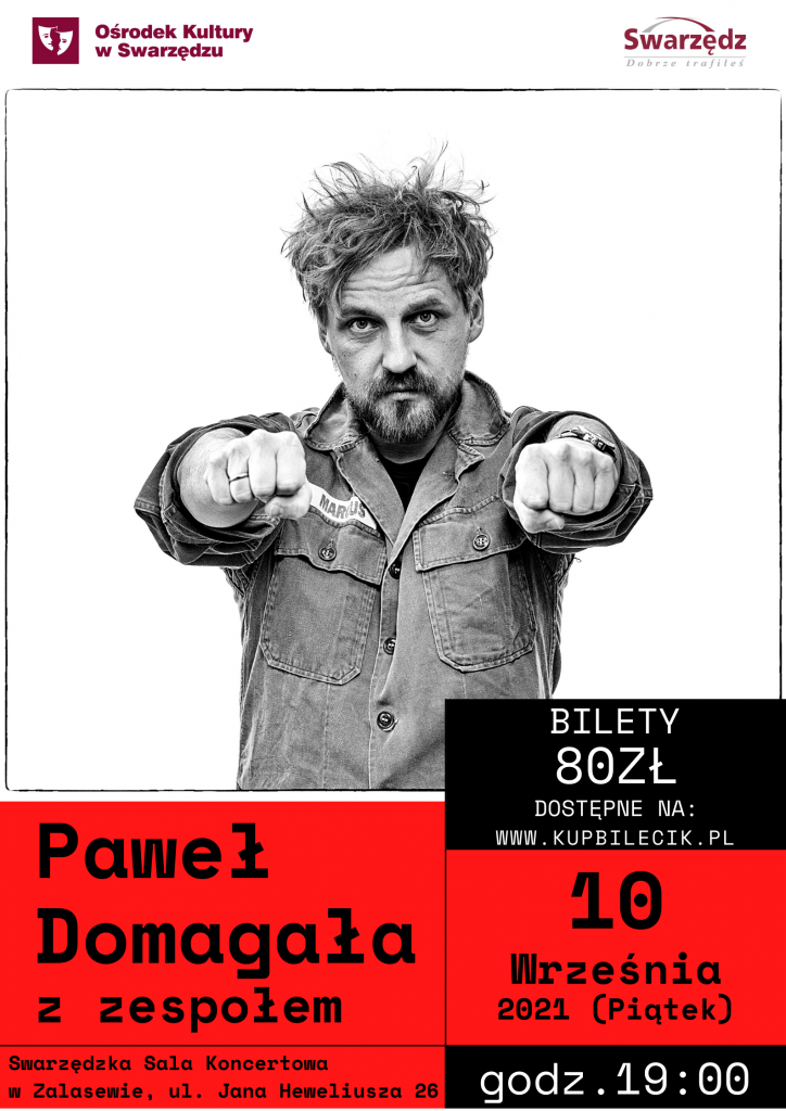 Koncert Pawła Domagały odbędzie się10 września br. o godz. 19.00 w Swarzędzkiej Sali Koncertowej w Zalasewie. Bilety można kupić na stronie www.kupbilecik.pl
