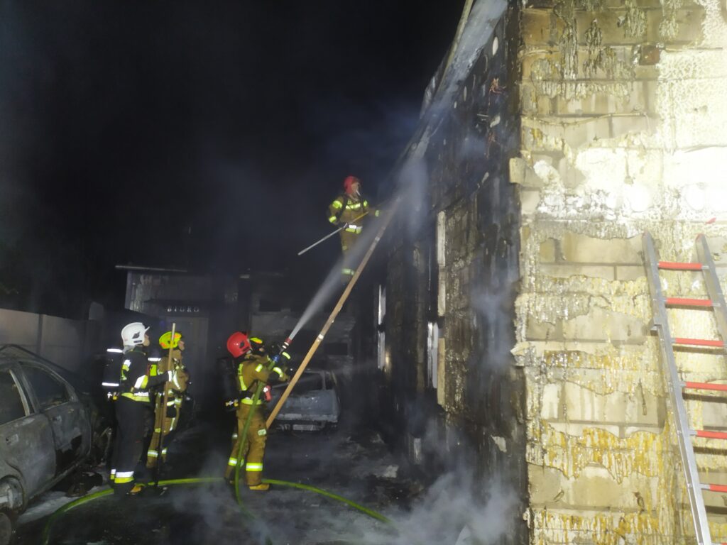 W sobotę, 12 marca wieczorem doszło do bardzo groźnego pożaru warsztatu blacharsko – lakierniczego przy ul. Jesionowej w Swarzędzu. – Po dotarciu na miejsce pierwszych zastępów strażacy zastali silnie rozwinięty pożar samochodów na placu, a ogień przenosił się już na sąsiednie budynki warsztatu i biura – relacjonuje w rozmowie z „TS” Tomasz Tomaszewski, naczelnik OSP Kobylnica. Niestety, pomimo szybkiej interwencji strażaków, aut nie udało się uratować. – Spaleniu uległy cztery samochody, a kolejne trzy zostały uszkodzone – wyjaśnia z kolei Tobiasz Baranicz z OSP Swarzędz. Akcja gaśnicza, jak informują strażacy, była bardzo trudna, a pożar zaczął też zagrażać przyległym budynkom. Na miejsce wezwano kolejne zastępy straży pożarnej. – Strażacy zabezpieczeni w aparaty tlenowe – pomimo wysokiej temperatury – prowadzili intensywne działania gaśnicze, nie chcąc dopuścić, aby pożar przeniósł się na przyległe budynki. Po kilkudziesięciu minutach pracy w bardzo trudnych warunkach pożarowych, strażakom udało się opanować pożar – wyjaśnia szef kobylnickich druhów. Strażacy rozpoczęli dogaszanie; przy pomocy kamer termowizyjnych sprawdzili też wnętrze warsztatu oraz biura. Pomimo spalenia elewacji oraz bram i okien, ogień nie przedostał się do wnętrza. W działaniach ratowniczych, które trwały prawie dwie godziny wzięło udział łącznie 8 zastępów z Kobylnicy, Swarzędza, JRG-3, JRG-1, JRG-6 oraz oficer operacyjny Komendanta Miejskiego. W pożarze na ul. Jesionowej na szczęście nikt nie ucierpiał. Przyczyny pożaru ustala policja.