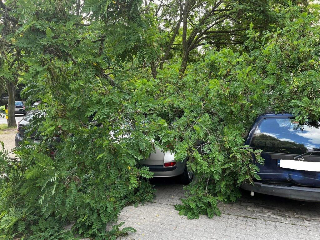 We wtorek, 5 lipca na dwa zaparkowane na os. Kościuszkowców auta spadła część drzewa. Pojazdy zostały uszkodzone.
