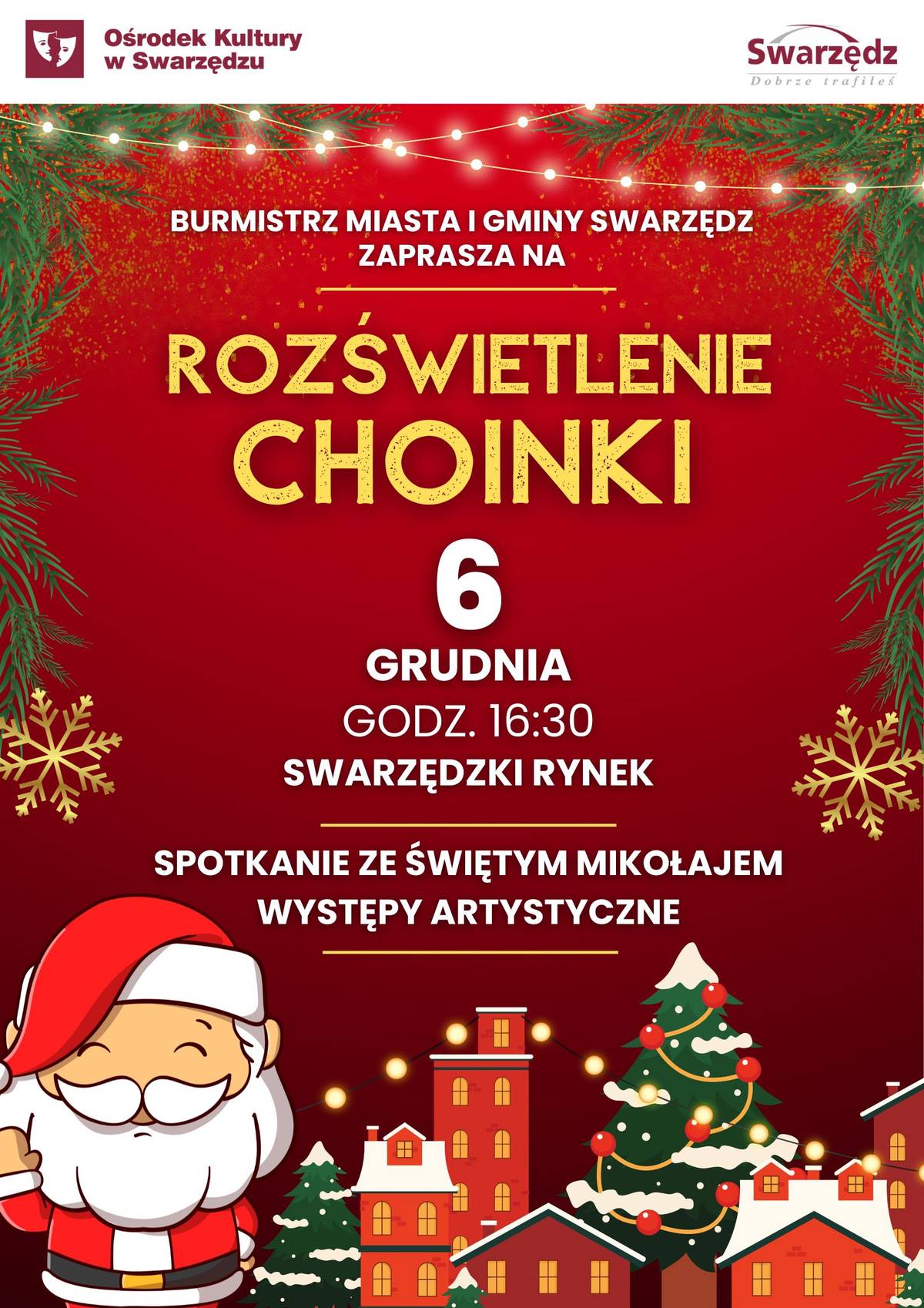 We wtorek, 6 grudnia o 16.30 na swarzędzkim rynku odbędzie się spotkanie z Mikołajem i rozświetlenie choinki.