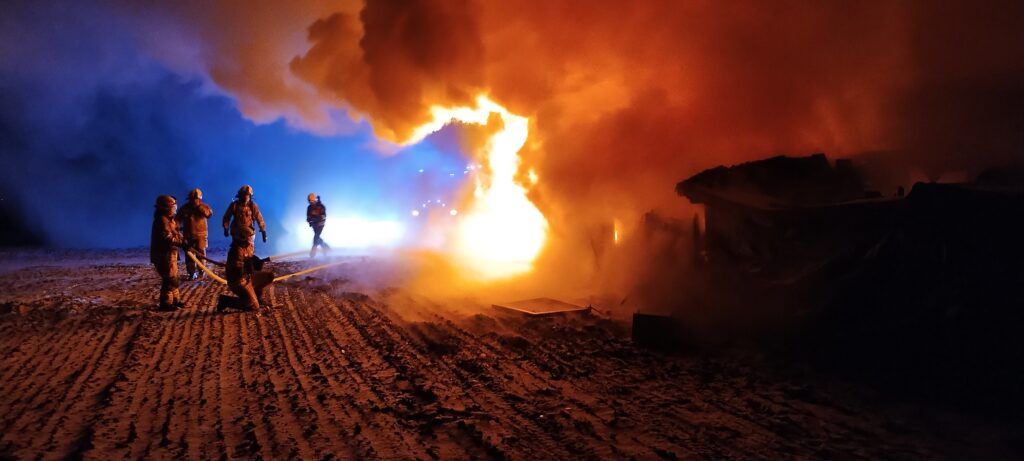 W niedzielę, 7 stycznia, kilka minut przed godziną 19:00 doszło do groźnego pożaru w Uzarzewie. – Po dotarciu na miejsce pierwszych zastępów strażacy potwierdzili pożar budynków gospodarczych przy budynku mieszkalnym. Budynki były całkowicie objęte pożarem – relacjonuje Tomasz Tomaszewski, naczelnik OSP Kobylnica.  Strażacy natychmiast przystąpili do akcji gaśniczej. Po kilkunastu minutach intensywnych działań gaśniczych strażakom udało się opanować pożar i można było przystąpić do dogaszania pogorzeliska. – Działania gaśnicze bardzo utrudniała niska temperatura powodująca zamarzanie łączników w liniach gaśniczych oraz zamarzanie mokrych ubrań ratowników, co wymuszało ciągłe rotowanie strażaków pracujących bezpośrednio w strefie działań – relacjonuje szef kobylnickich strażaków.  Pożar został ostatecznie ugaszony po dwóch godzinach. Nikt nie odniósł obrażeń.