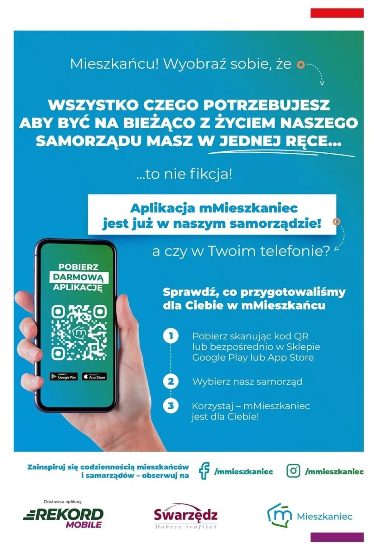 Aplikacja Lupe, z której mieszkańcy korzystali od dłuższego czasu, by np. sprawdzić harmonogram wywozu śmieci – jak informuje gmina – przestała działać wraz z końcem roku. Od nowego roku w Swarzędzu obowiązuje jednak nowy software na telefon komórkowy – mMieszkaniec, znacząco ułatwiający mieszkańcom szybki dostęp do różnych kanałów z informacjami związanymi ze sprawami samorządowymi. Obok bowiem wspomnianego kalendarza odbioru odpadów, można za pośrednictwem tej aplikacji zyskać również dostęp do bieżących miejskich ogłoszeń, kalendarza imprez, budżetu obywatelskiego, czy Biuletynu Informacji Publicznej działającego pod oficjalną stroną miasta. – Aplikacja umożliwi Państwu również zgłaszanie ewentualnych nieprawidłowości w odbiorze odpadów komunalnych – informuje gmina. Sam program jest prosty w obsłudze, a także czytelny, poprzez „kafelkową” budowę, która dodatkowo oferuje możliwość rozbudowy aplikacji o kolejne zakładki informacyjne. Aplikację można pobrać przez sklepy Google Play i AppStore lub po prostu skanując kod QR.